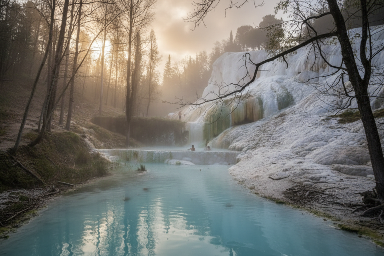 Acque termali a 48°C immerse nel bosco, con le spettacolari cascate calcaree del Fosso Bianco. Un'esperienza unica a pochi minuti dall'agriturismo.
